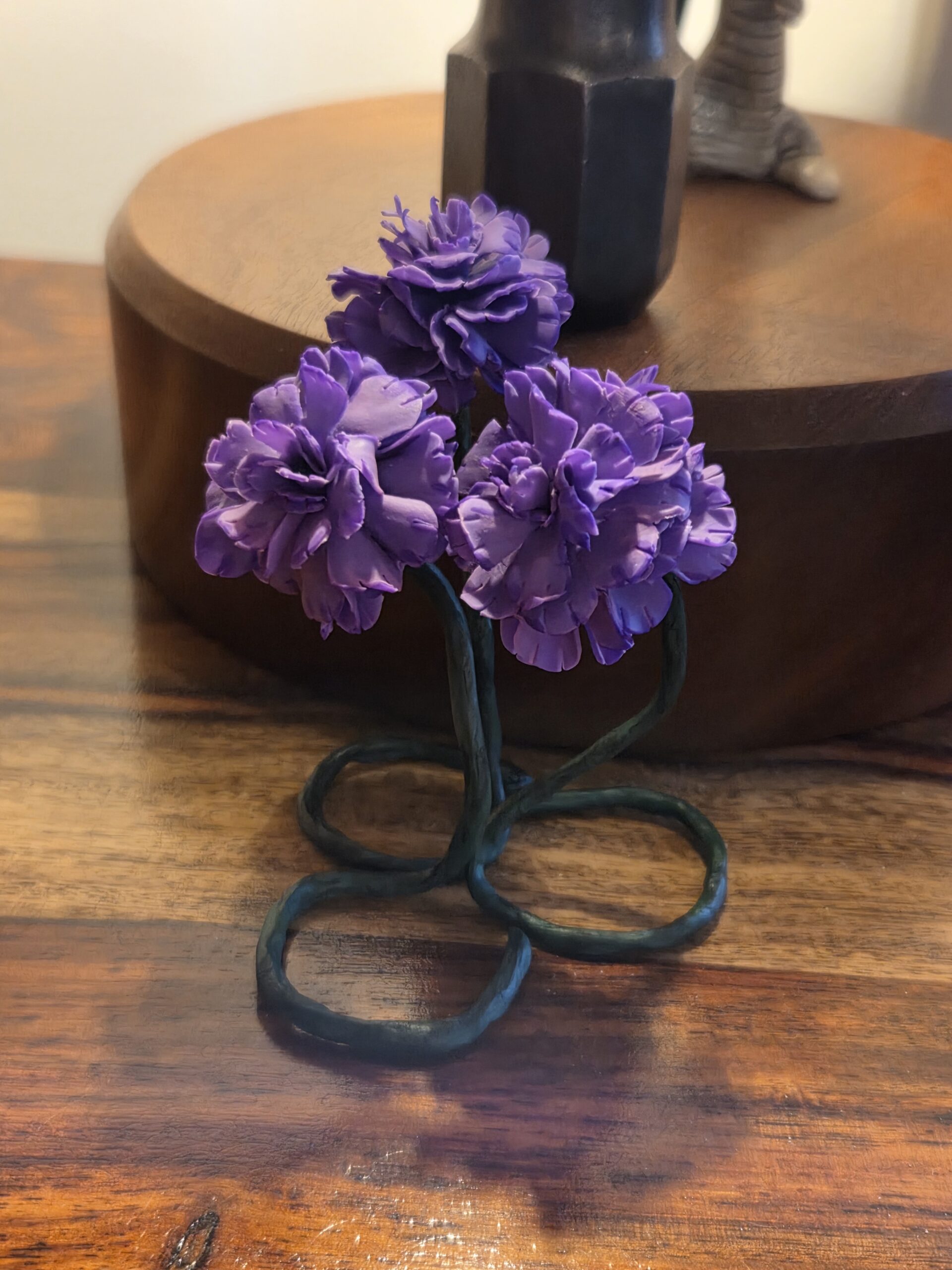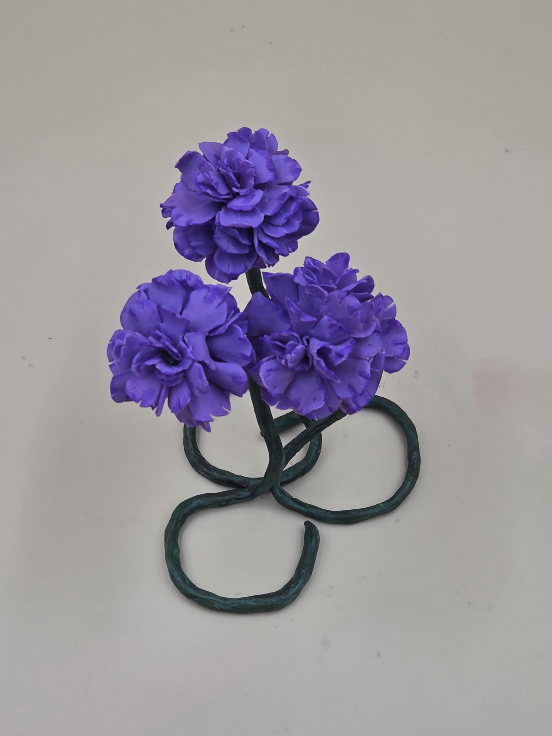 Realistically sculptured, these beautiful carnations are made from air drying clay (cold Porcelain) with wire support.