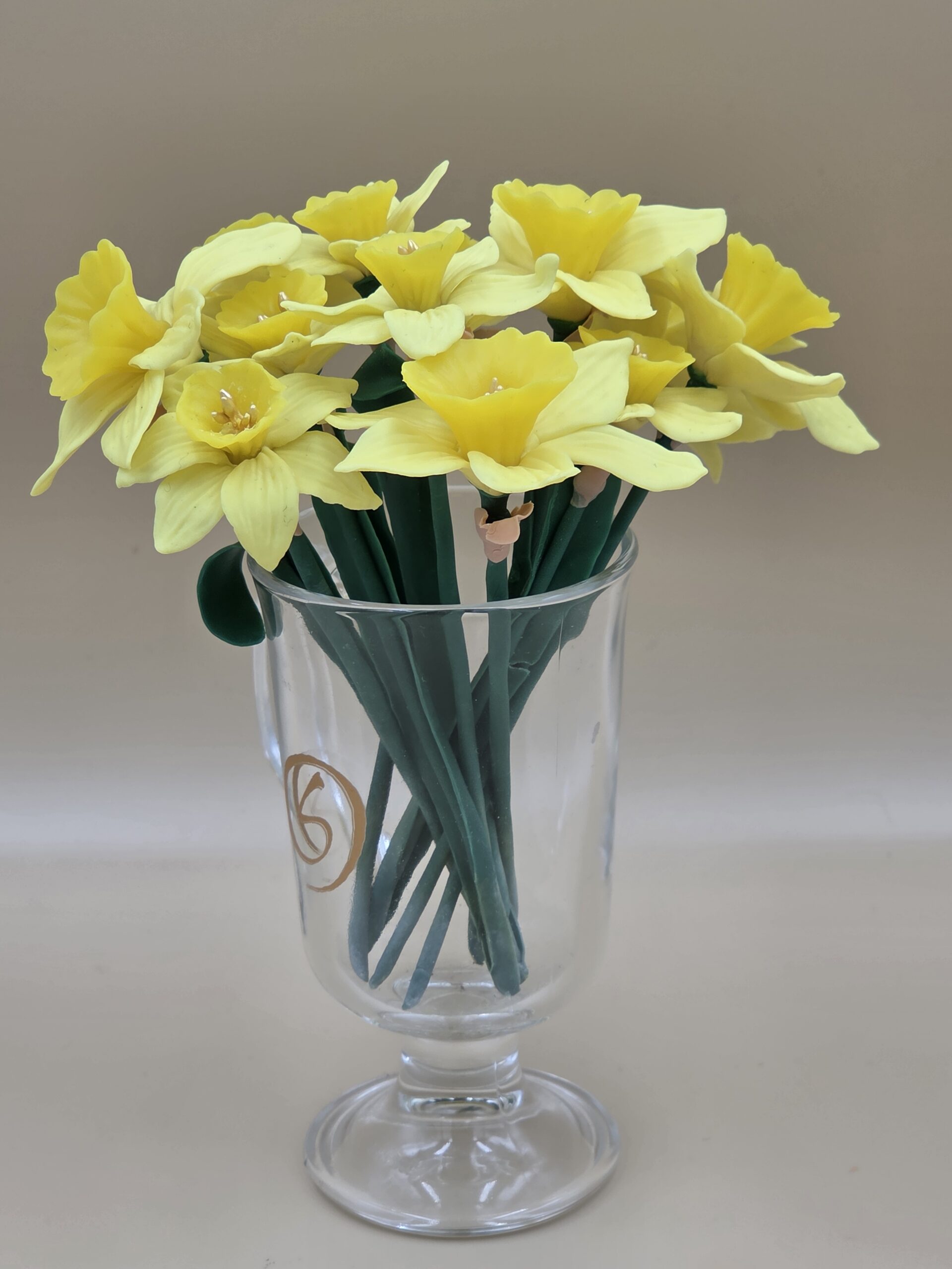A reminder that spring is only around the corner with these realistically sculptured, beautiful yellow small Daffodils, made from air drying clay (cold Porcelain) with wire support.